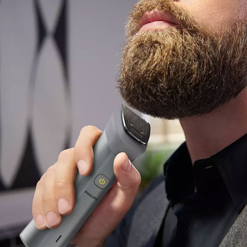 One tool, complete styling for face, hair and body. Create your personal look with this versatile trimmer, which includes 12 quality tools to style your face, head and body. Self-sharpening stainless steel blades stay sharp as day one without oil for a precise trim.