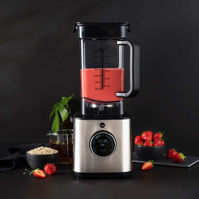 PowerFuel XL är designad och utvecklad för att effektivt mixa stora mängder kvantiteter av både varma och kalla ingredienser. För att uppnå detta har Wilfa kombinerat en höghastighetsmotor på 2000W med 6 skarpa knivar och en 2 liters kanna. Wilfas senaste toppmodell i PowerFuel-serien med extra stor kanna mixar de hårdaste ingredienserna till perfektion på bara några få sekunder. Det ger dig ett perfekt resultat med allt från is, smoothies, mandelmjöl, jordnötssmör till rykande varm färdig soppa. Med sina 6 specialdesignade knivar och 32 000 varv per minut, är denna blender den perfekta kökshjälparen. Den digitala displayen räknar ner tiden både när du kör med manuell hastighet och när du använder de förinstallerade programmen. Praktiskt och enkelt att använda.